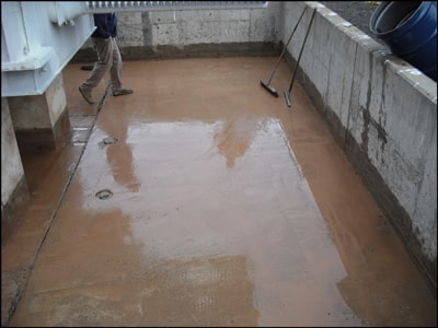 A Geomembrane Liner system is installed to seal the floor of the concrete containment