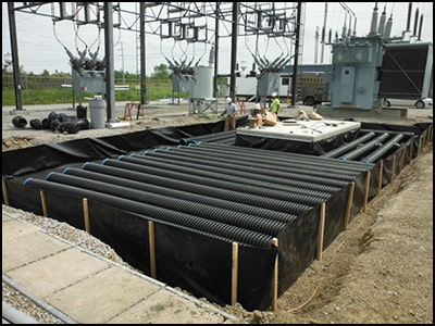 A design and procedure developed by Burns & McDonnell tackled this problem head on by adopting the practice of using ADS perforated pipe (or any type of corrugated HDPE pipe) in the floor of the containment units to increase the oil capacity … and reduce the size of the footprint of the containment area.
