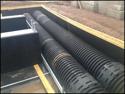 This method has also been successful with using 12- to 24-inch perforated piping. Cover the pipes with a minimum of 12 inches of stone.