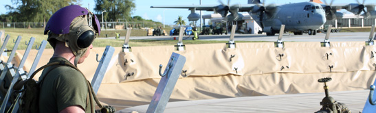 Five people can assemble the heavy-duty military All-Terrain Berm™ in the field in less than an hour – even on the most demanding terrain. Designed for the utmost flexibility and security, the berm adapts to the contour of the ground.