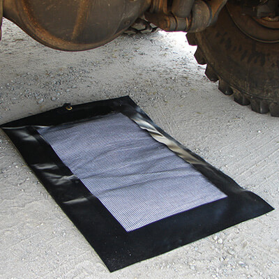 Small containment berms or drip pads can prevent oil or other substances from seeping into the floors of a garage or warehouse.