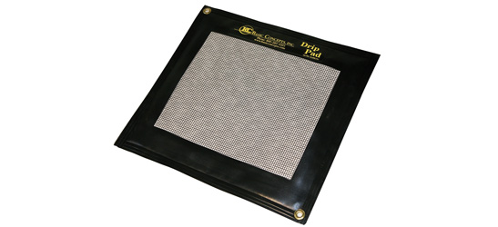 Description - These drip pads feature replaceable, oil-only sorbent within a welded leakproof barrier. Rated for drive-over applications, pads include brass grommets in opposing corners for anchoring. Anchoring stakes not included. Pads come in two sizes; extended model is weighted to keep it down in high winds. Outer shell is reusable with optional refill sorbent packs. Helps comply with EPA for spill prevention (SPCC).