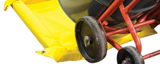 No assembly is required to use these spill pads. Pads are manufactured with grommets in each corner for anchoring, and the 2 1⁄2 in drive-over walls of the Spill Pads are made of coated vinyl urethane foam. The drive-over feature allows carts and dollies to conveniently unload drums or barrels into the spill pad without damaging the walls of the berm.