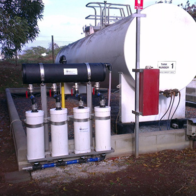 This allows pumped water to flow through the header tank system under gravity, removing any back pressure issues, allowing small amounts of sheen and silt to be captured in the first stage filters. In the event of a major hydrocarbon leak, the second stage filters will solidify or ‘lock up’, allowing no contaminated hydrocarbons to escape into the environment.