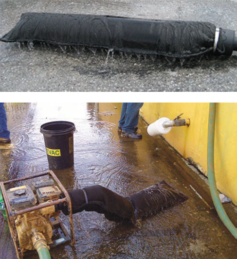 EVAC Filtration System uses state-of-the-art filtration technology to remove suspended solids and light sheen from water discharge operations in vaults, manholes, bilges, tanks, elevator shafts and more. Its unique three layer system adsorbs hydrocarbons, removes large and fine sediment, and polishes the water.